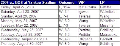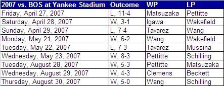 The Yankees asserted themselves admirably in 2007, going 6-3 against the Sox at home, including a no-one-saw-that-coming victory by none other than Kei Igawa early in the season.